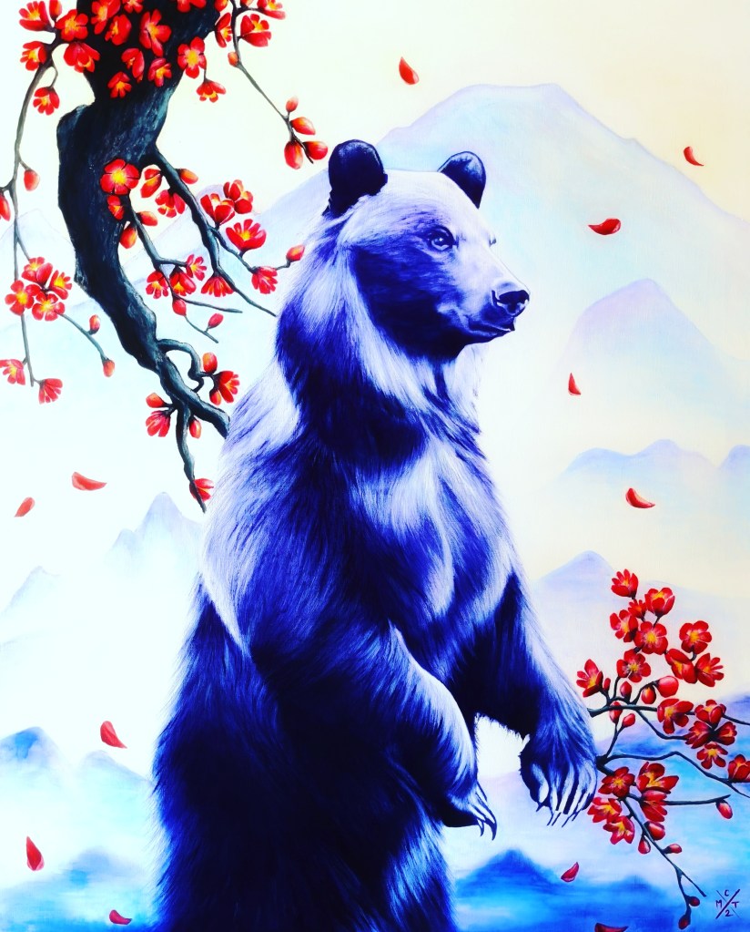 GRIZZLY BLEU, stylo bille et acrylique sur toile, 100*81 cm, 2020